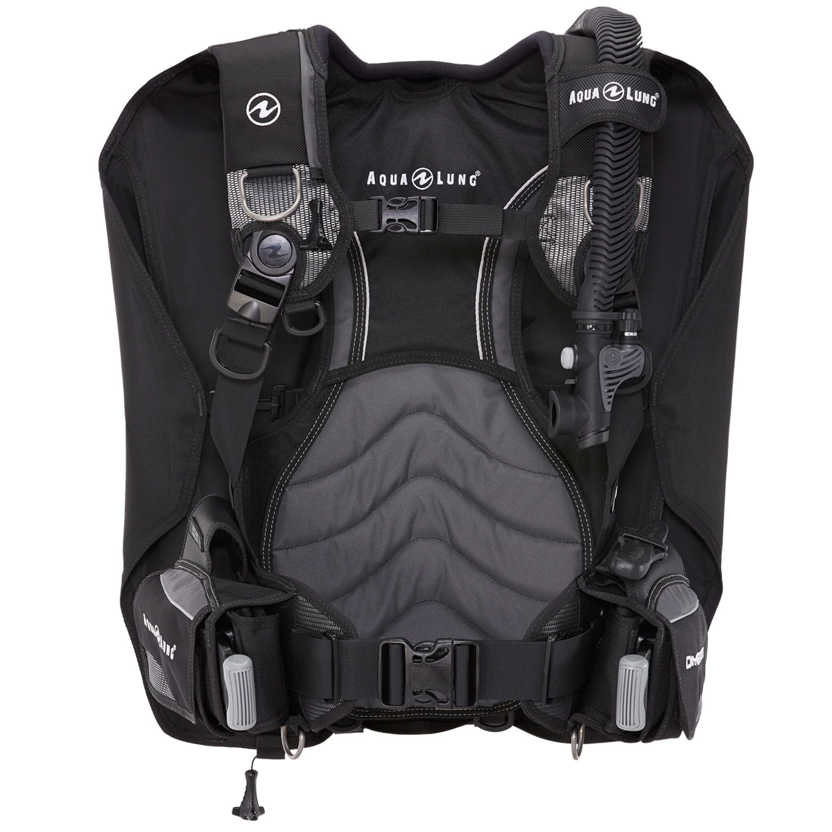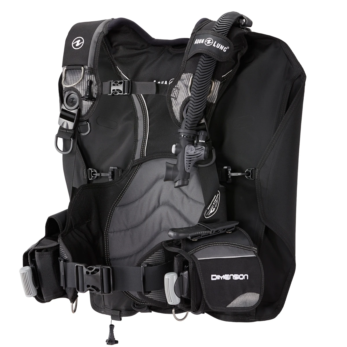 The Dimension is a back inflation style BC that incorporates Aqua Lung’s integrated Wrapture™ Harness System, providing amazing comfort and stability. The Dimension is made from durable, fade-resistant ResisteK™ material and features the patented SureLock™ II mechanical integrated weight system.