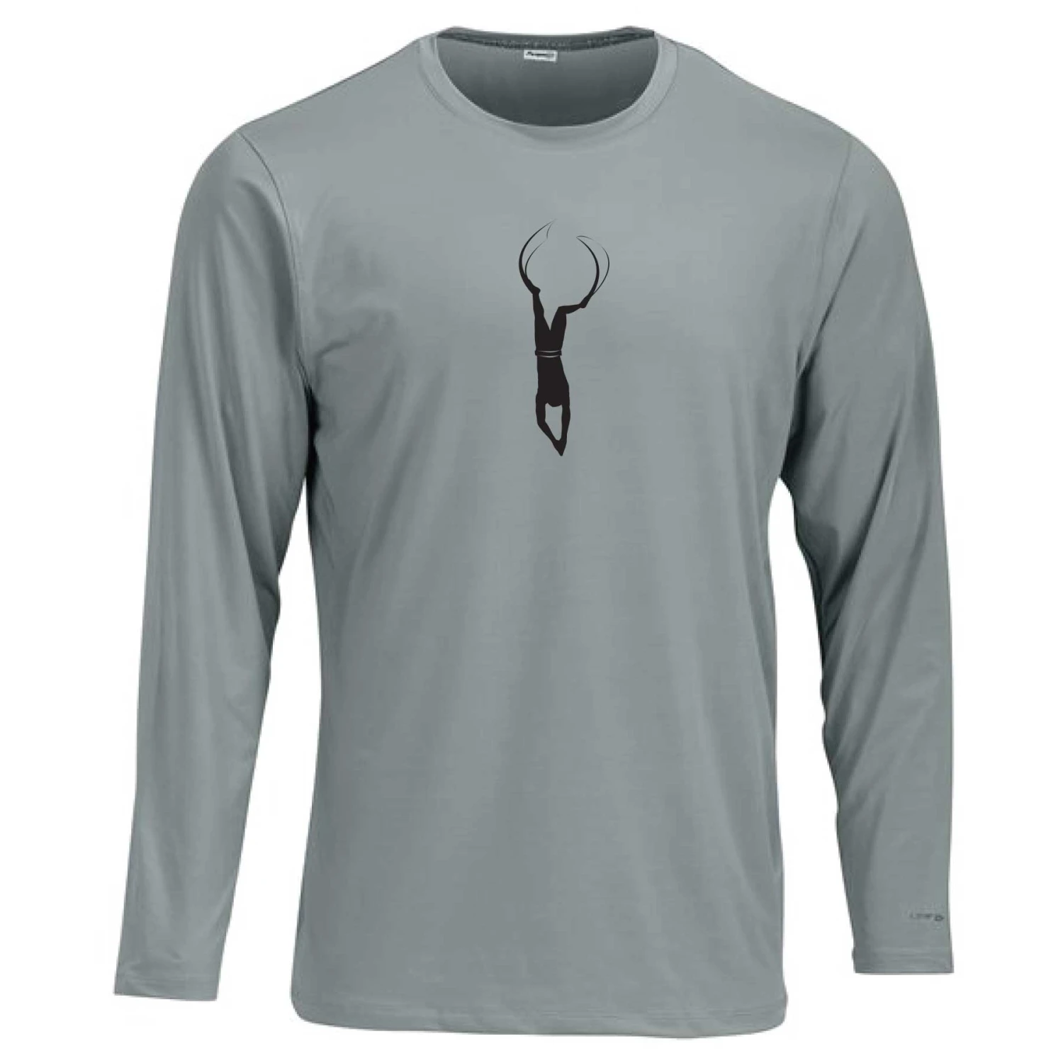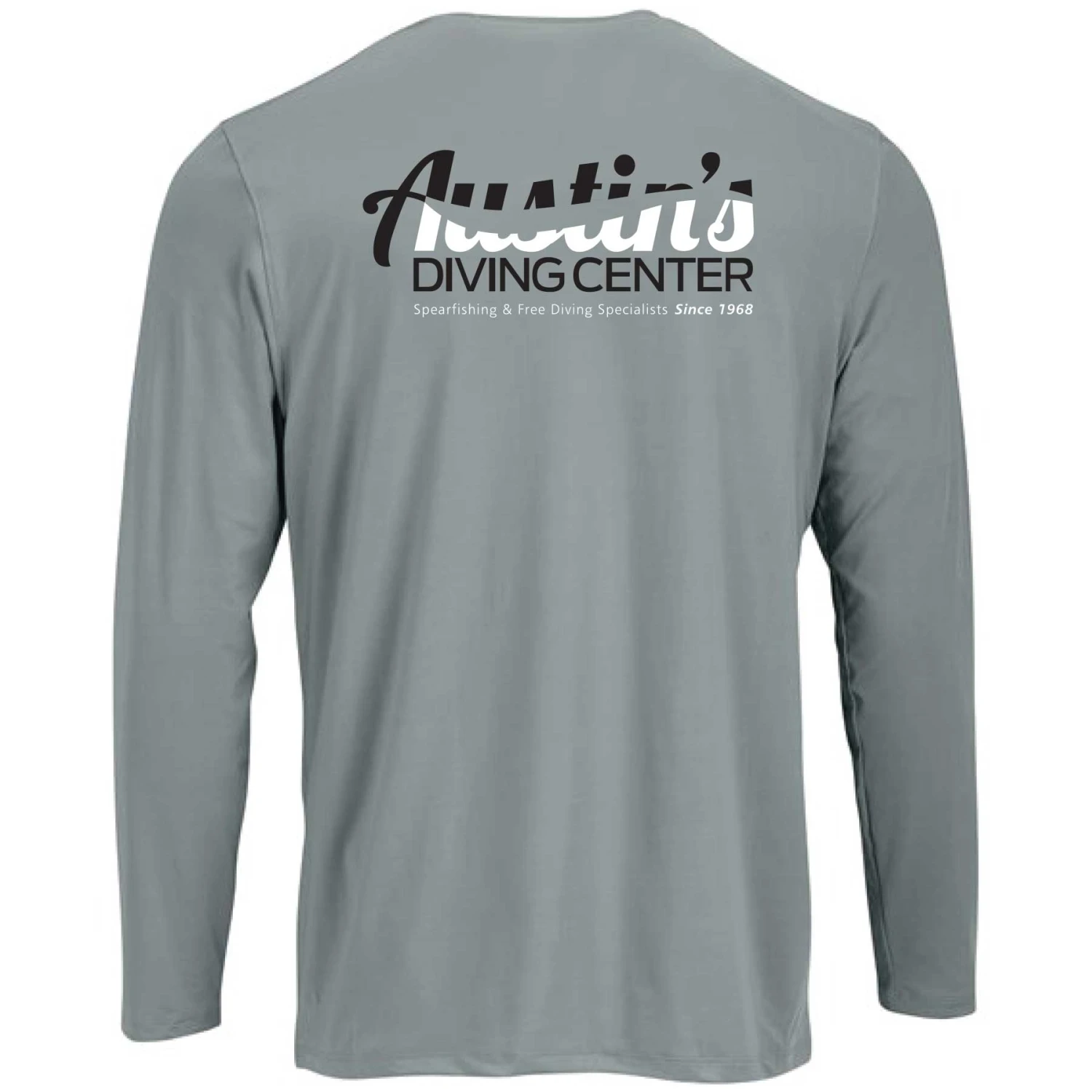 Austins’ Diving Center long sleeve performance shirt with freediver logo.