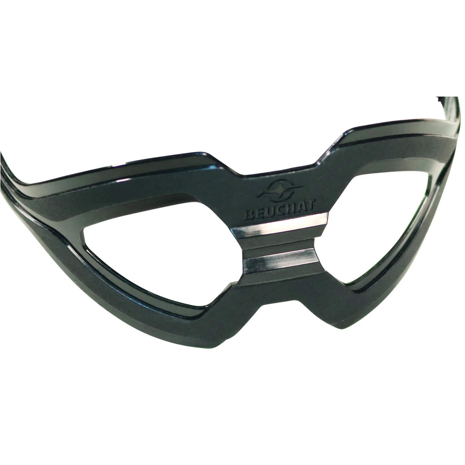 The mask’s improved hydrodynamics make a real difference both when descending in free diving and while swimming on the surface. The Beuchat Shark mask is designed to incorporate sharp edges and curves to break up the silhouette in the same way as a stealth aircraft. Additionally, the grainy surface on the skirt of the mask reduces light reflection and makes it even harder to detect.