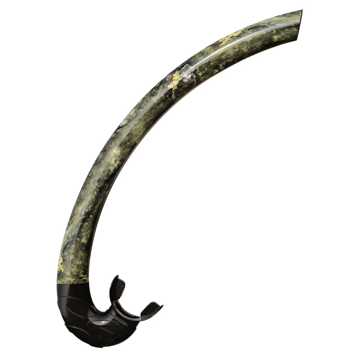 Mistral is a snorkel specifically designed for freediving and spearfishing. It features an anatomical bite in non-allergenic silicone for long use. The tube is molded in two different materials with a different hardness. The central part of the tube is made in semi-rigid thermoplastic and the upper part of the snorkel is made in a softer more flexible material.