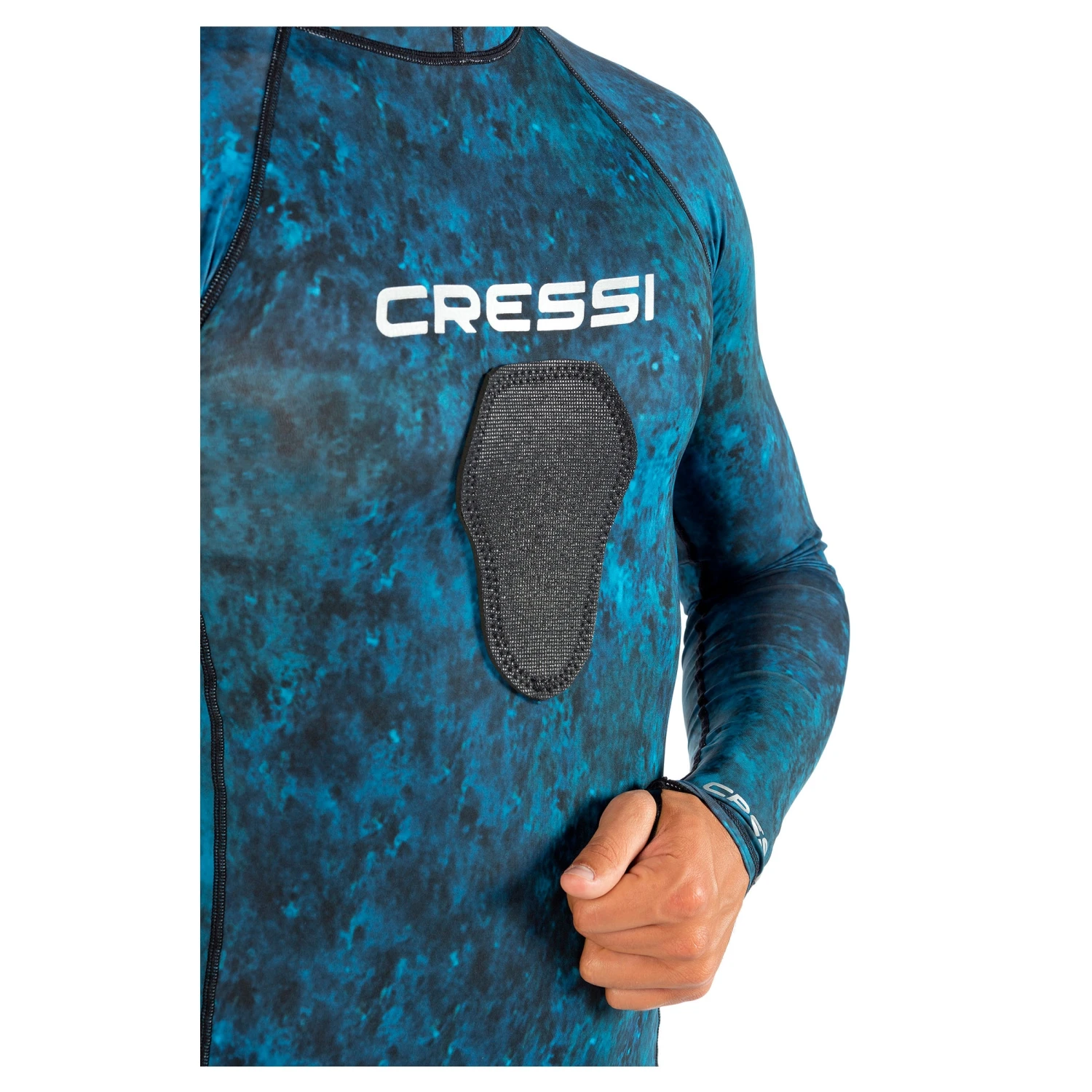 - The chest is seamless and features a soft durable pad that protects the body. Essential for loading the speargun. The rash guard is made of 80% nylon and 20% spandex thick 190 g/m2. Made with anatomical cuts and can be worn in any water sports.
