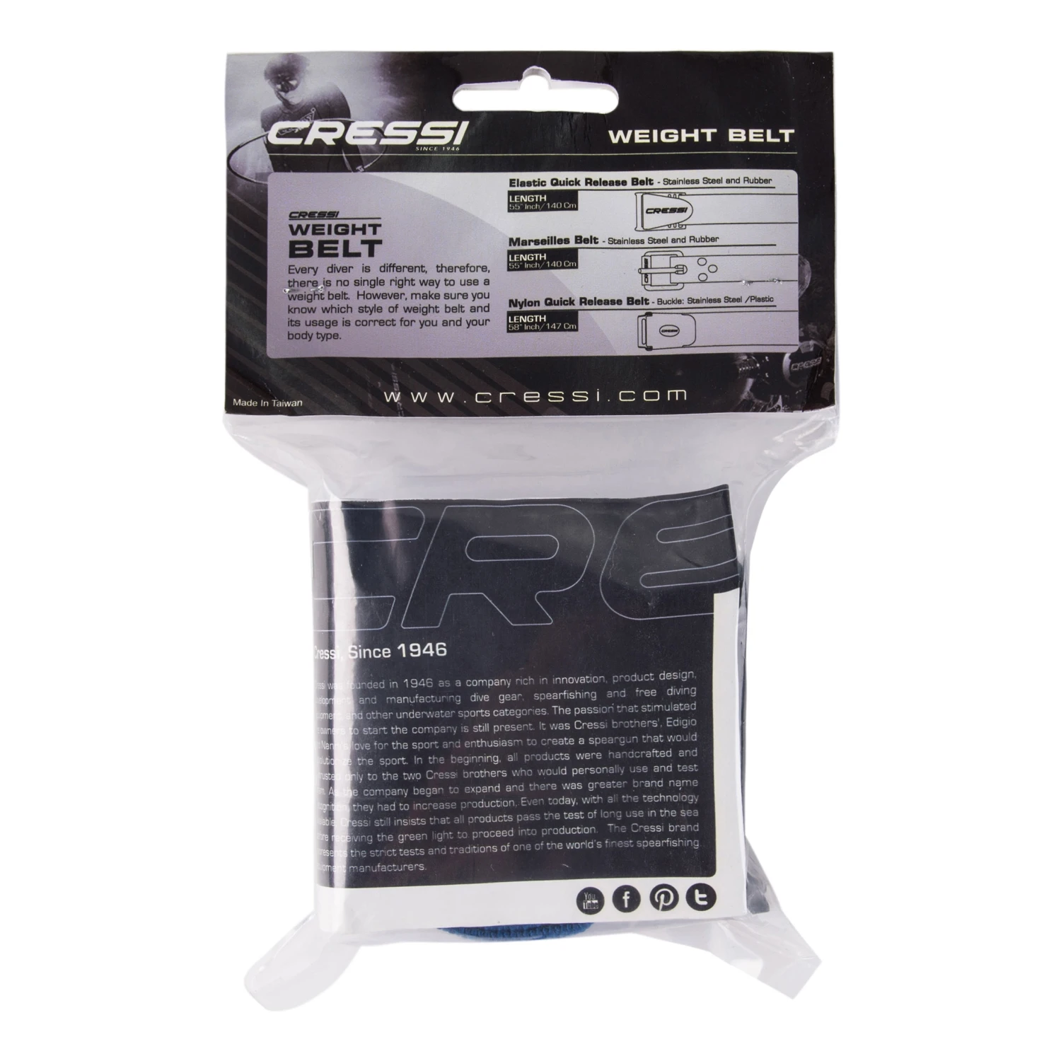 The Weight Belt is the must-have for the passionate freediver. Works great also for scuba diving. It’s made of strong woven Nylon with a hard plastic buckle. The quick-release buckle provides instinctive and rapid emergency release. The buckle pin is made of light and long-lasting plastic. The Nylon Weight Belt is designed in Italy by Cressi and made in China. Cressi has been an Italian brand pioneer in scuba diving, snorkeling and swimming equipment since 1946. The product is covered by a 2-year limited warranty.