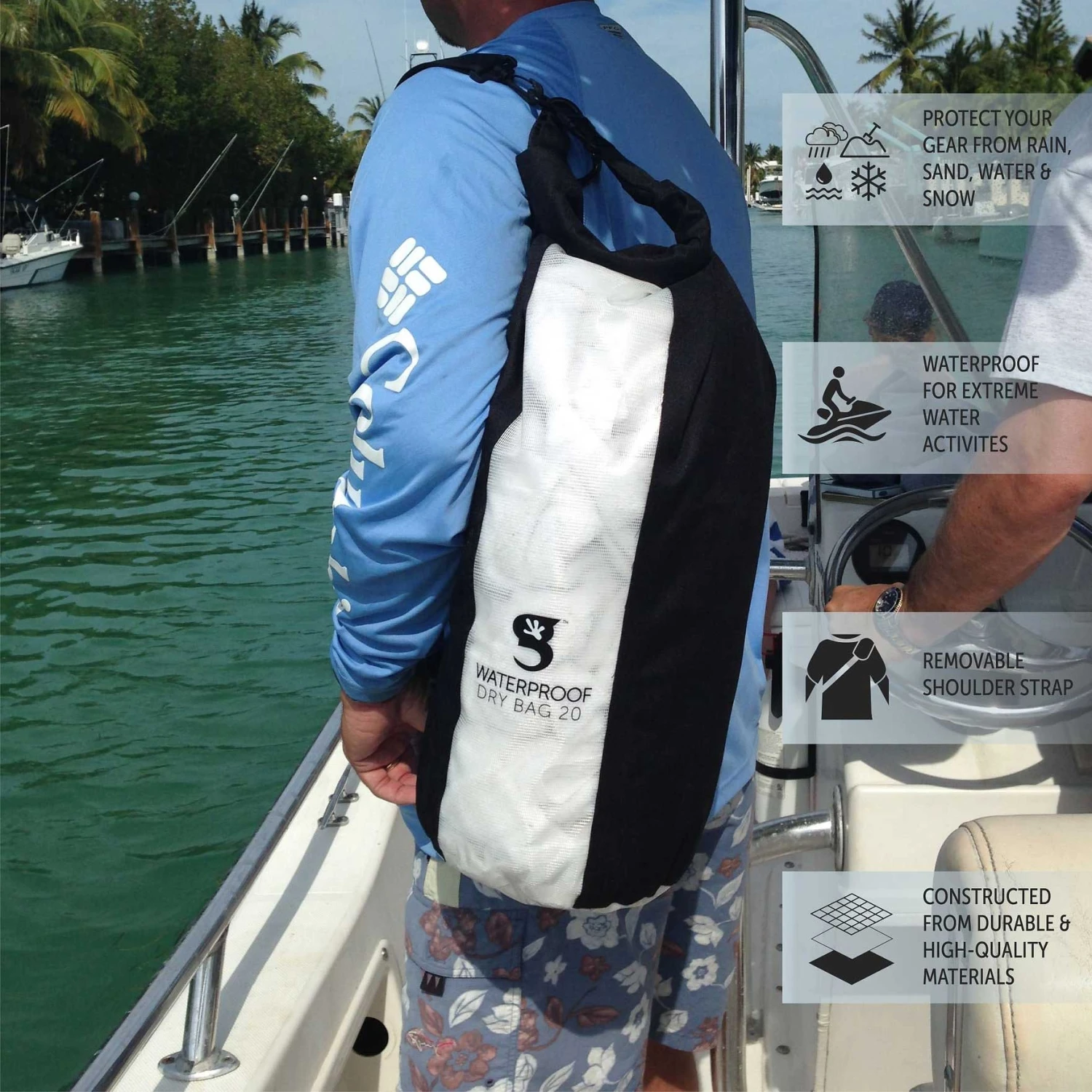 These unique dry bags feature durable waterproof pvc tarpaulin interior, soft polyester exterior and shoulder straps to protect your gear during the most extreme outdoor water activities. A translucent panel allows for an easier search for your gear.