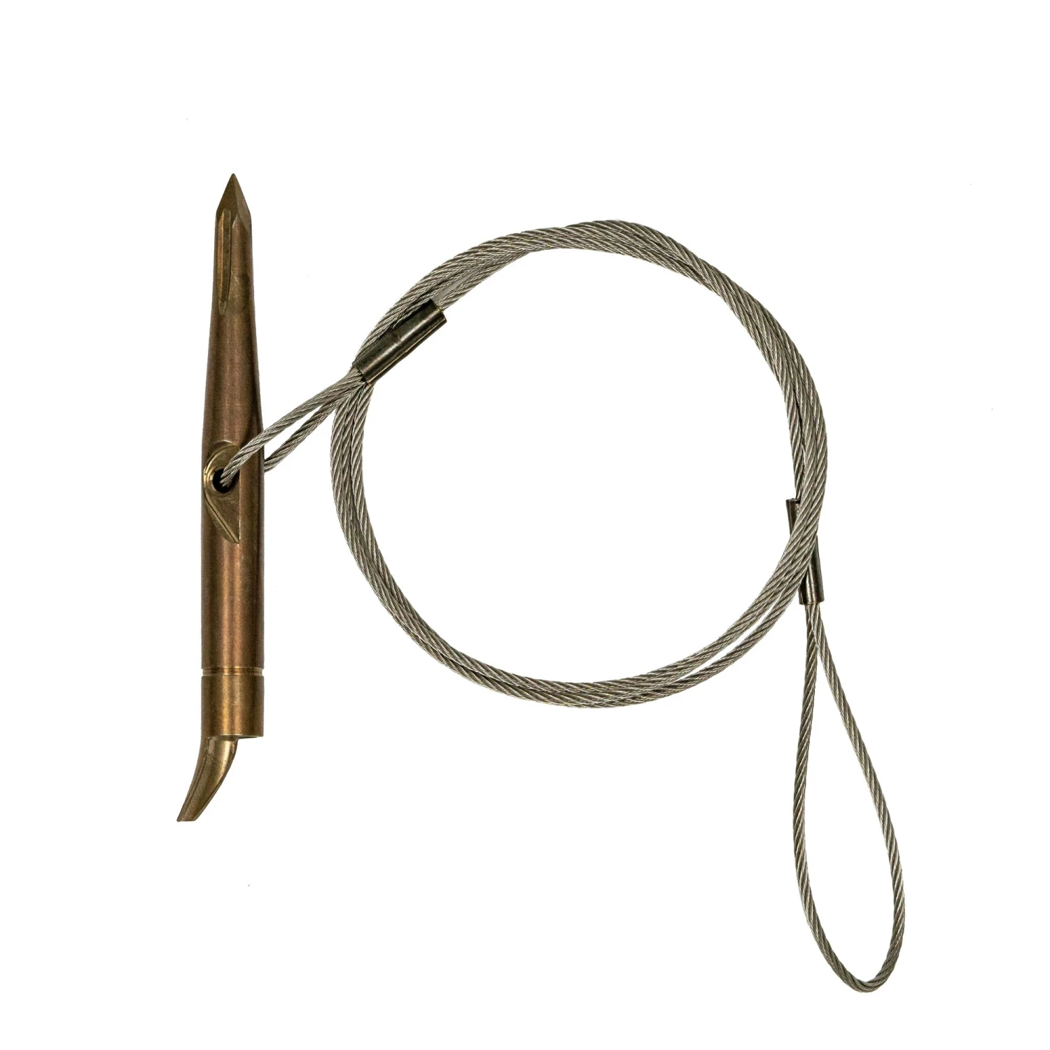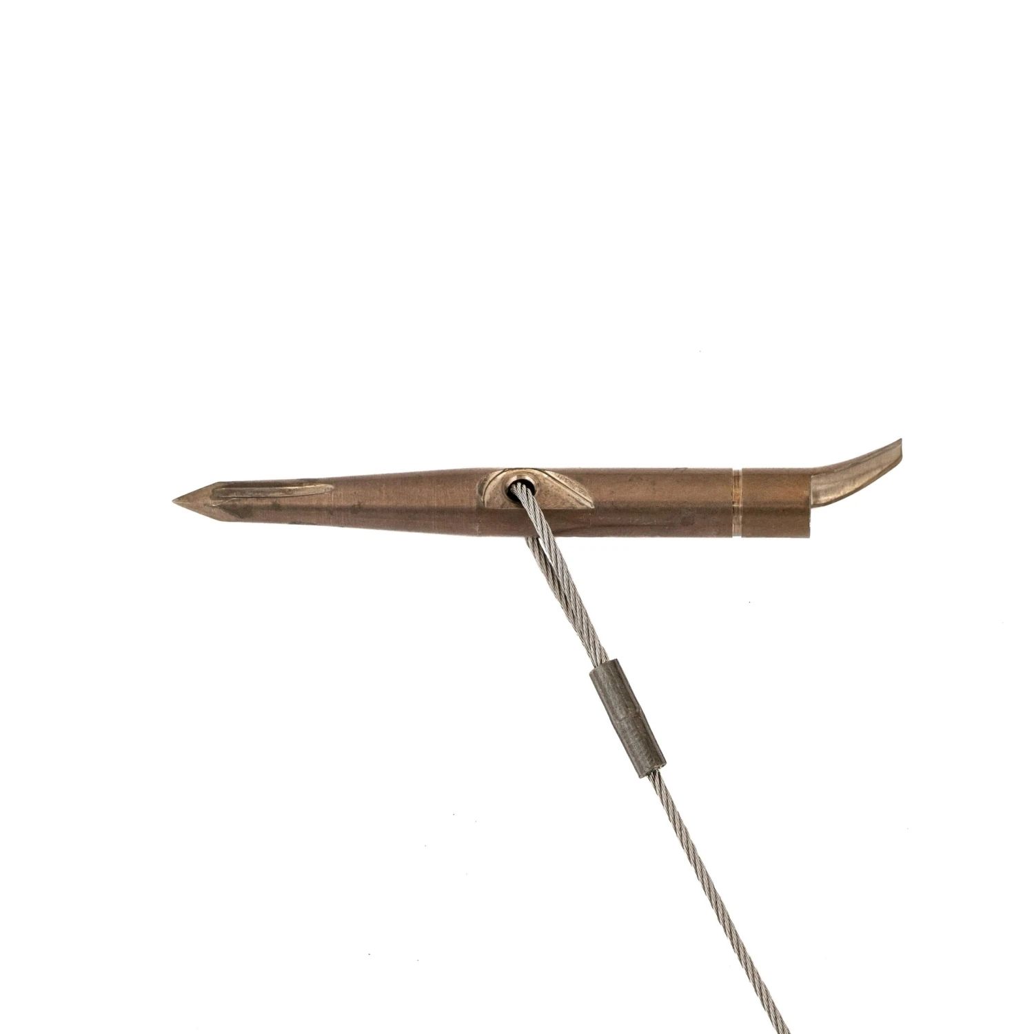 The Showstopper slip tip is unique in design. This piece is machined from 17-4 stainless steel and machined with an extremely sharp point. The slip tip has a very thin front half that slowly swells into a slightly larder diameter in the main section. The barb is very pronounced to make sure that the tip deploys and holds inside the fish.