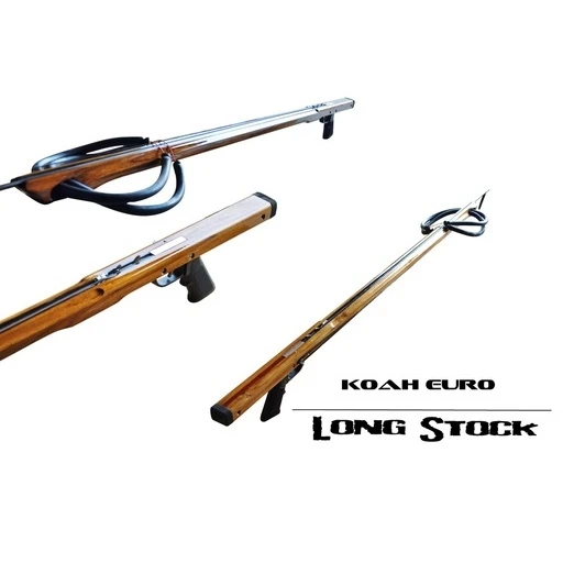 The Koah Euro LS has all the benefits of the traditional euro with an additional 4 inches behind the trigger mechanism to put more space between the shaft loading fins and the diver. This allows for hip loading and easier chest loading. This space also creates a higher pivot point on the speargun for assisted tracking. Available in 100LS which has a 52″ stock, 110LS has a 56″ stock and 120LS has a 60″ over all stock.