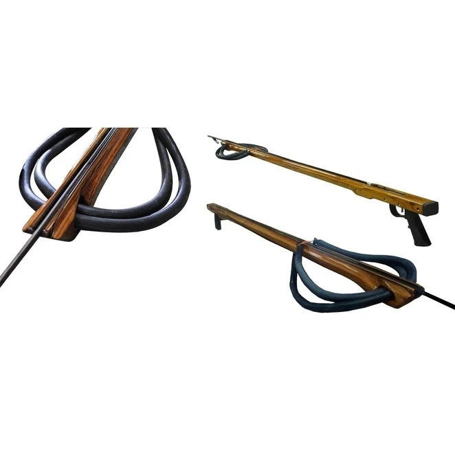 The muzzle and side channels were designed to pull the inner band close to the shaft, down the length of the speargun to create lateral band pull which greatly reduces recoil. Guns are measured from front of Trigger mechanism to tip of muzzle. Total stock (from gun butt to tip of muzzle) is as follows…