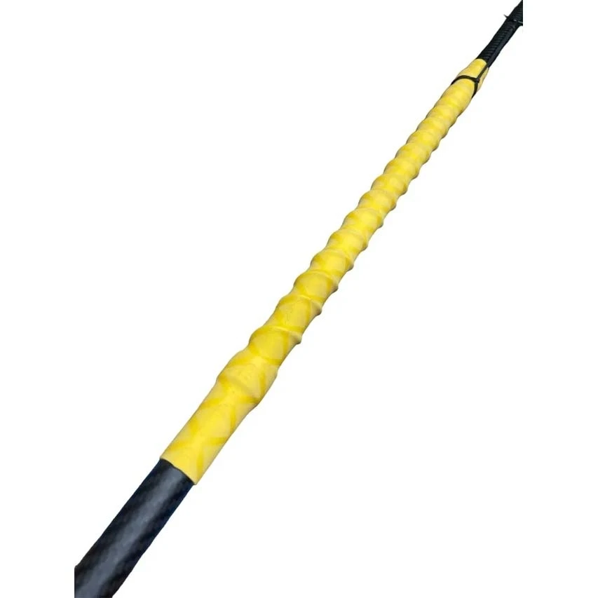 The Koah Pierce 8′ (9’5″ total) Carbon Fiber Roller Banded Polespear. Constructed of 100% T300 Carbon Fiber for rigidity and high tensile strength. Comes with all stainless connections for strength and 17-4 stainless heat treated injector rod with Slip tip. Comes in (3) sections, (2) at approximately 36in and the middle section is 24in. Stock power band is 1/2 in outside diameter with a 3/16 inside diameter. We also carry 1/4in inside diameter if you are looking for something with a little easier stretch. The holding point of the roller band can be adjusted to increase pre-tension. Durable Cross hatch webbed grip for a stronger hold. Strong 500lb 3/32 coated cable used at the muzzle ring and slip tip rigging.