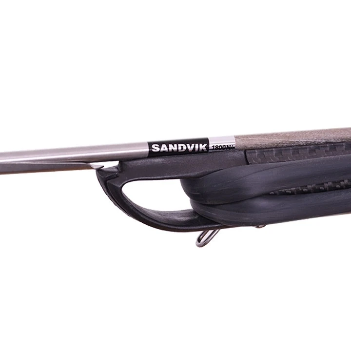 It comes with a 7.0mm Sandvik, shark-fin shaft with a single barb and a tri-cut point. Open muzzle’s single socket hosts two round rubber bands. Anatomic handle D’Angelo II low profile with new stainless steel reverse trigger mechanism adds extra 7cm of loading length and shaped grip in white color that fits in every spearo’s right hand.