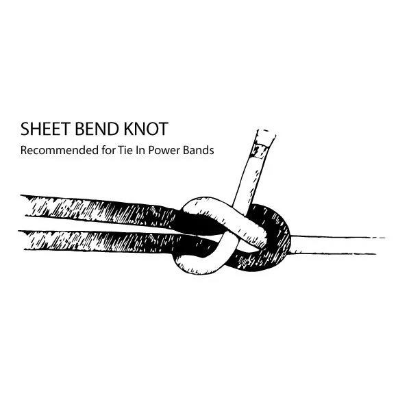 We recommend a “sheet bend” knot to close/finish off Tie In Power Bands.