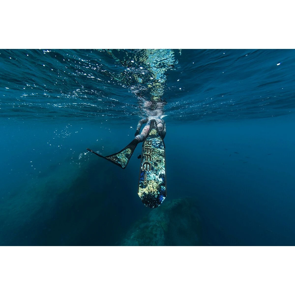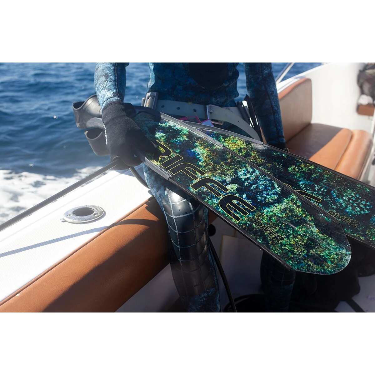 RIFFE has partnered with renowned top of the line fin blade manufacturer DiveR. Custom epoxy resin system and aerospace grade fabrics produce a fin that transfers load progressively from toe to heel. Fiberglass blades are produced with a “medium” hardness for optimum performance.