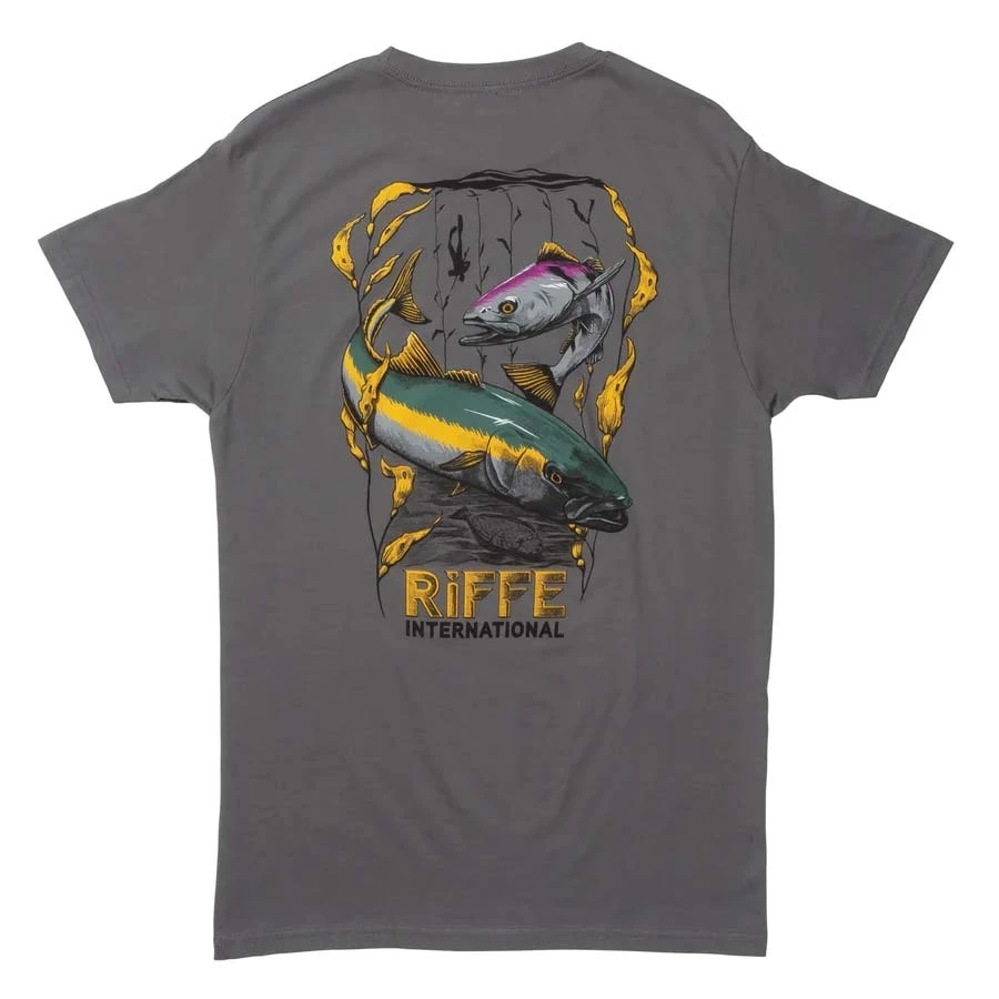 The trifecta of the Left Coast. Our West Coast Dive 100% combed ring spun cotton t-shirt is soft and comfortable donning 3 staple and tasty fish of our Southern California coast – white seabass, yellowtail and halibut.