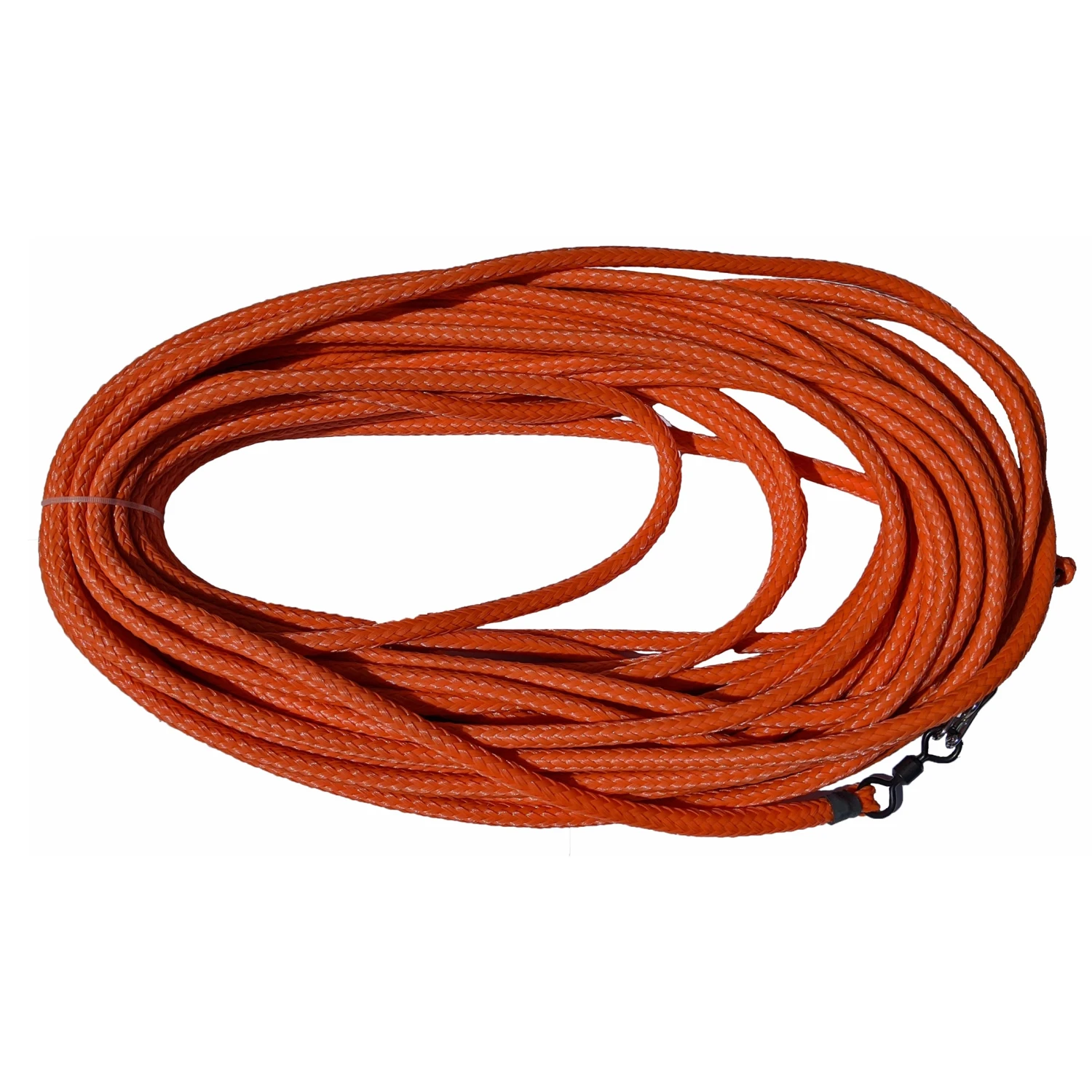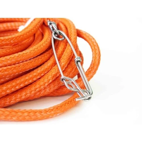 Rob Allen Foam Filled 3/8″ Polypropylene Floatline – available in Black/Green combo or Orange. Rugged line, very strong, just enough positively bouyant to help prevent line tangles when you attach your float line to your speargun. Comes standard with a clip on one end and a swivel on the other. Available in various lengths from 20′ to 120′.