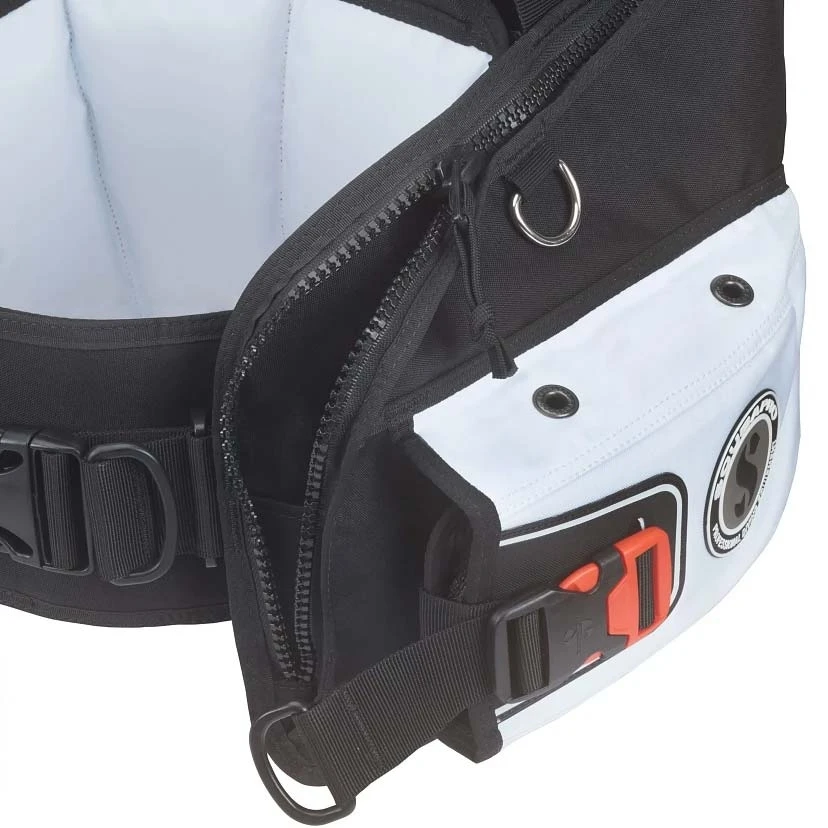 - Adjustable cummerbund compensates for suit compression, ensuring a snug fit at varying depths.