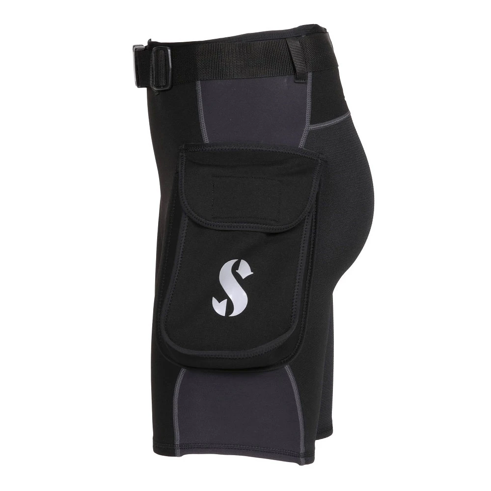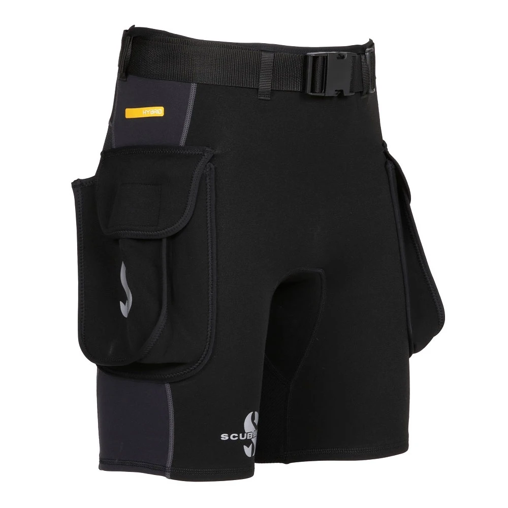 The belt threads through a series of belt loops and includes an easy-to-use male/female squeeze buckle closure. A new anti-abrasion fabric on the seat panel enhances durability, and the two large cargo pockets are handy for carrying money, sunglasses or other accessories when enjoying a day on the beach or dive boat. Hybrid Cargo Shorts are designed to be worn either by themselves or over a dive suit.