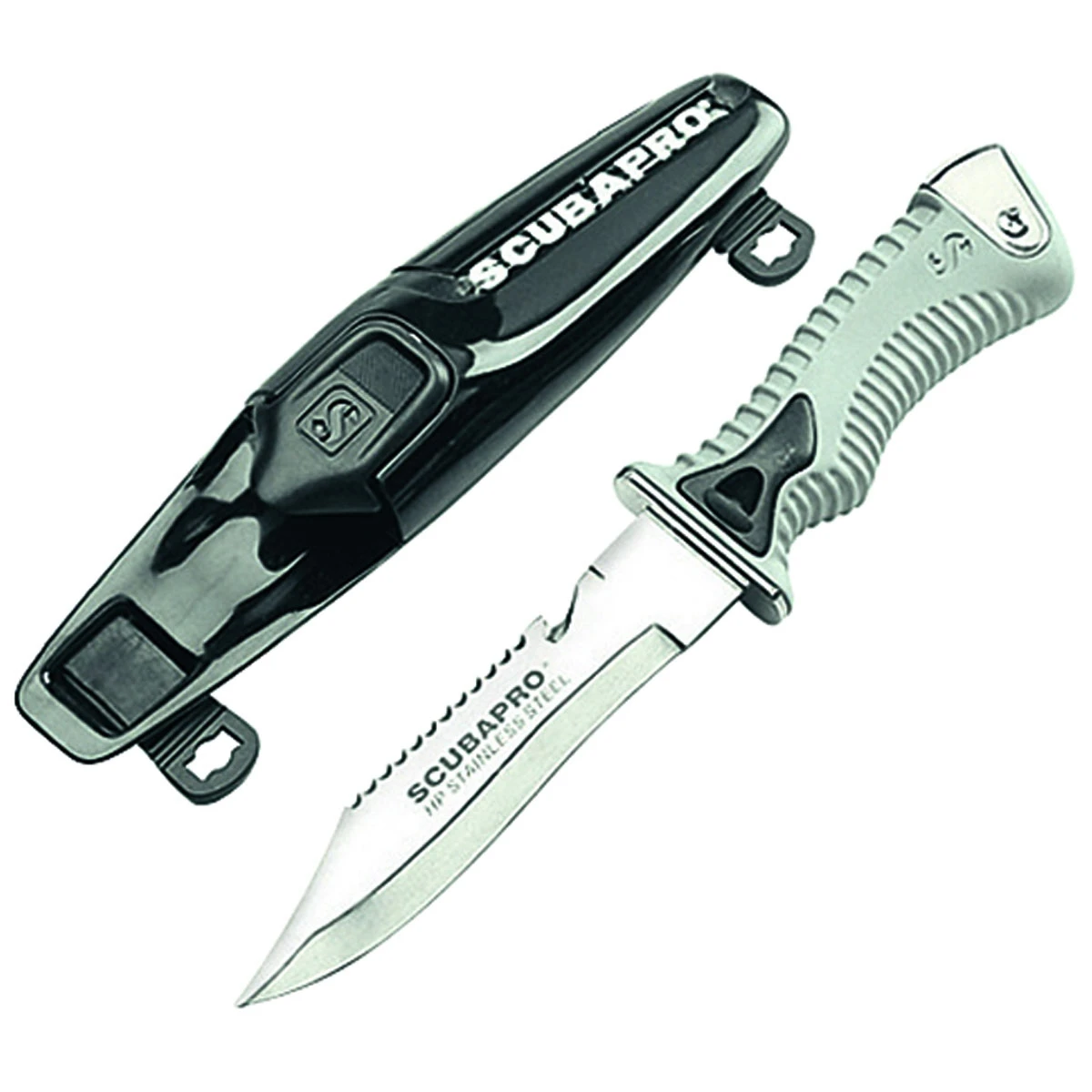 If you’re a fan of full-sized dive knives you’re going to appreciate SCUBAPRO’s all-purpose K6. Featuring a quality stainless steel blade with a traditional clip point, the K6 offers a fine hollow-ground cutting edge on the lower edge of the blade (best for making clean slicing cuts), and a serrated edge on top (best for sawing through rope). There’s also a notch for cutting line.
