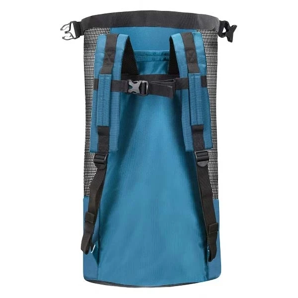 The perfect carryall for snorkeling gear or tropical dive gear, the new Sport Mesh 65’s cylindrical shape and combination of mesh material and new denim blue color fabric makes it a lightweight yet durable bag that holds a lot of cargo. The roll-top opening allows for easy access and provides a secure closure, and the side zipper gives you access to contents even when the roll top is closed.