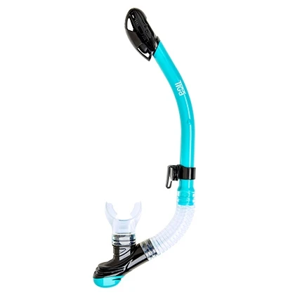 The Tiga Dry Snorkel uses the latest dry snorkel technologies to provide the diver with an easy breathing and most importantly a dry experience. The streamlined base provides a reservoir of space for air to flow freely from the tube to the mouthpiece without restriction. The oversize purge valve allows easy clearing of the snorkel. The 100% liquid silicone mouthpiece and flex tube ensure comfort in every situation.