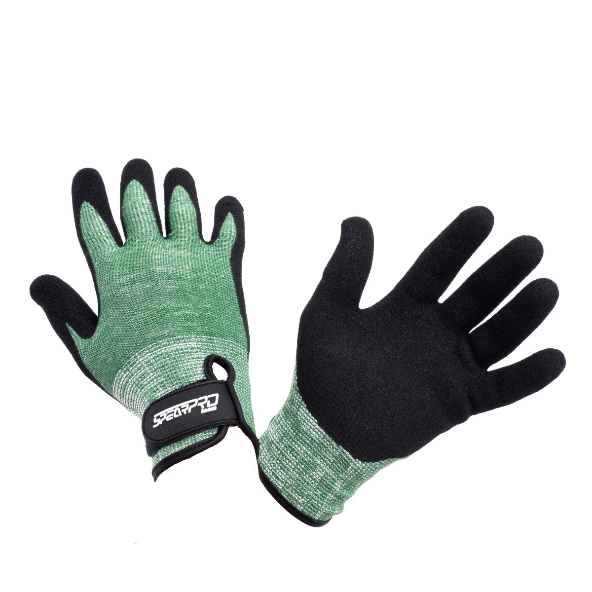 Designed and used by professional spearos, the SpearPro Dyneema Gloves are ready for any situation. Dyneema is 8x more abrasion resistant than kevlar and is currently the toughest fiber in the world. Manufactured with level 5 Cut resistance, nitrile coated palms / fingers, and a Velcro strap for a perfectly secure fit.