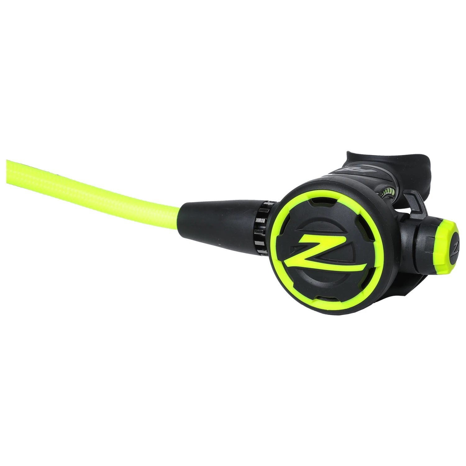 Lightweight high-performance second stage with a free-flow control. Also includes a heat sink and has and adjustable cracking pressure.This is very important in Octopus regulators, since the Pre-Dive position is much more resistant to Venturi-Free-flows that can sometimes result in significant air-loss during a dive. The F8 Octopus comes with a Yellow cover and 36″ hose.